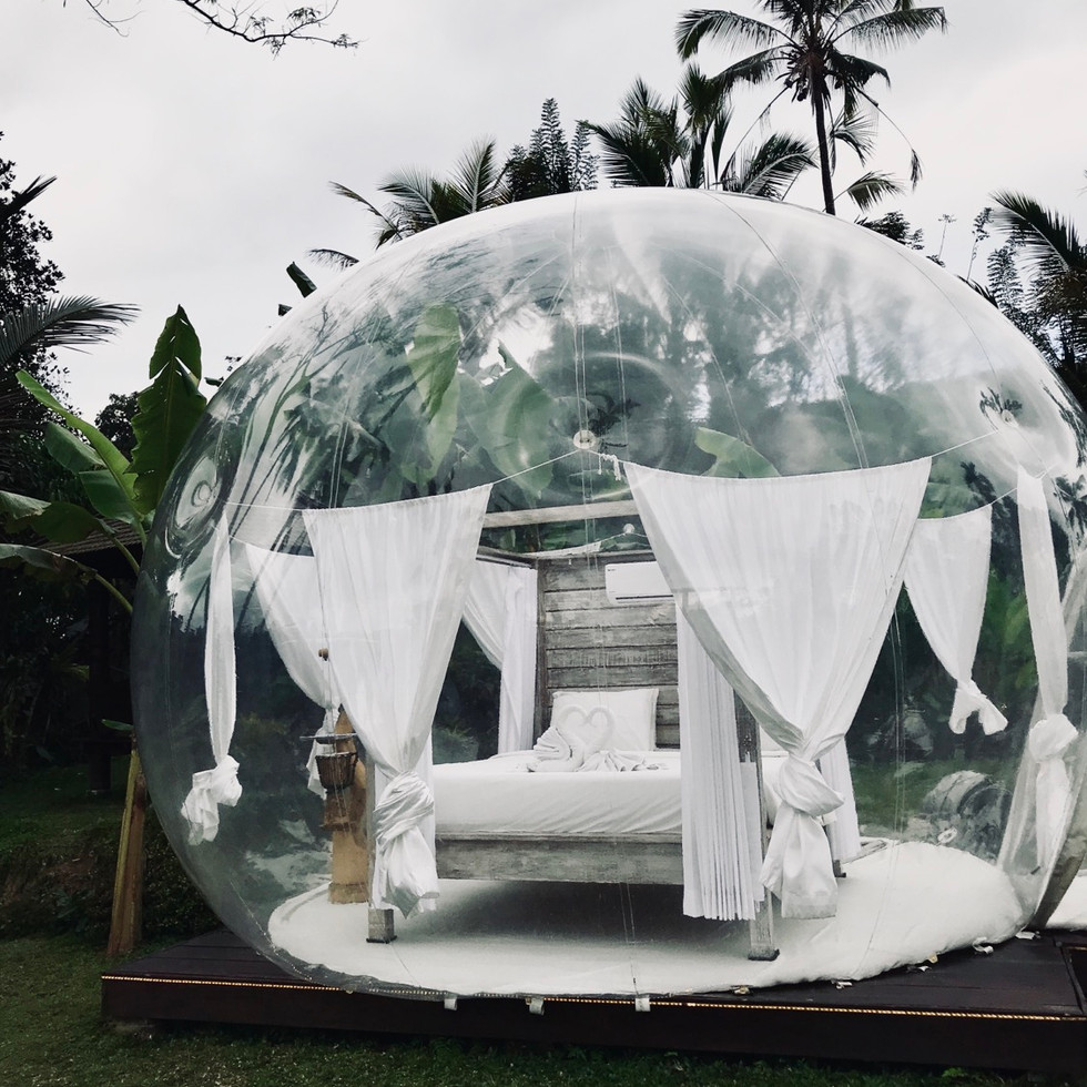 Wer einfach mal raus aus dem Trubel und etwas ganz besonderes erleben möchte, sollte unbedingt die Unterkunft im Bali Bubble verbringen. Aufregender könnte eine Nacht nicht sein: Einen unglaublichen Blick auf den Dschungel und schlafen unter einem magischen Sternenhimmel. Die Bubble ist komplett transparent und man hat einen komplett freien Blick. Die Dusche befindet sich draußen, wo dich der ein oder andere Frosch schon mal beobachten kann. Weit und breit nichts außer wir, die Natur, die Tiere und einige andere Mitmenschen, die dort nächtigen. Von denen man aber rein nichts mitbekommt, da alle 7 Bubbles voneinander getrennt sind. Kleiner Tip: Dicke Sachen einpacken, abends kann es frisch werden im Dschungel. Ein wunderschöner Platz, ein wunderschönes Erlebnis.